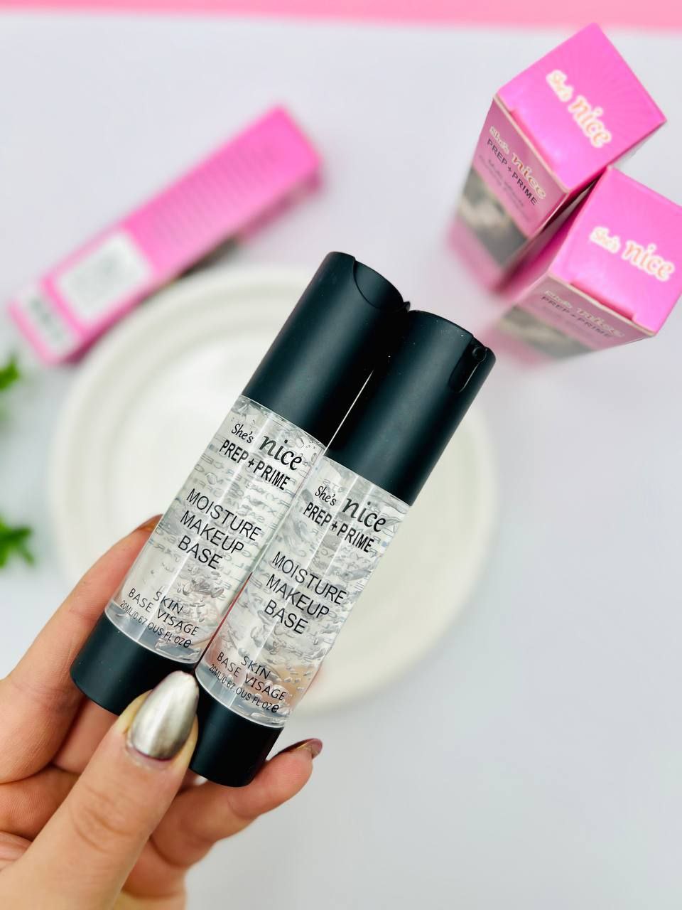 پرایمر ژلی و شفاف She's Nice که قبل از آرایش باعث آبرسانی فوری، یکنواختسازی بافت پوست و افزایش دوام میکاپ میشود. با بافت سبک و غیرچرب، پایهای صاف و مرطوب برای کرمپودر ایجاد میکند و جلوه طبیعیتری به پوست میبخشد.