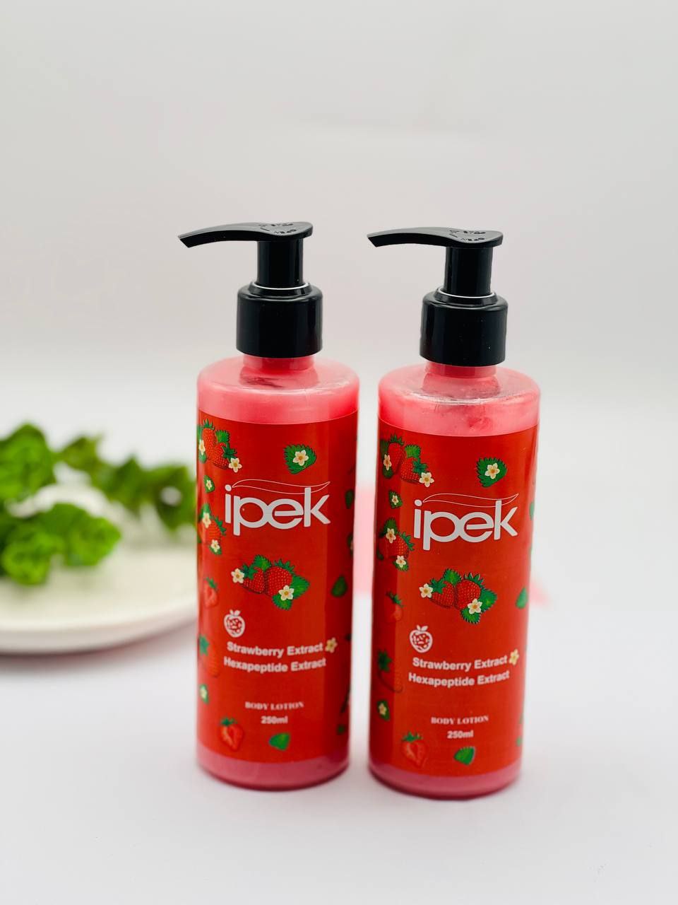 رایحه دلپذیر توت‌فرنگی : جذب سریع بدون چربی یا چسبندگی روی پوست حجم : ۲۵۰ میل